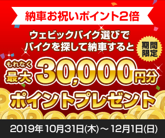 最大3万円分のウェビックポイント還元!バイクを買うならウェビックバイク選びに掲載中のショップがどこよりもお得!