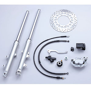 セット内容 :フロントフォークAssy、左右ブレーキキャリバー、ブレーキマスターシリンダー、ディスクブレーキ、ブレーキホース類、メーターワイヤー類、ステー、ガスケット類