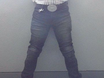 写真の「コミネ:WJ-732R ジーンズ」には横腰骨の部分にガードを入れる袋があるのでポン付け