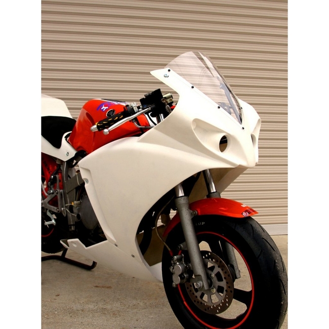 カウル材質:FRP・白色ゲルコート仕上げ、スクリーン材質:ポリカーボネイト樹脂、ヘッドランプ:PIAA製35Wハロゲンランプ、ポジションランプ:高輝度白色LED、ステー材質:ステンレス
