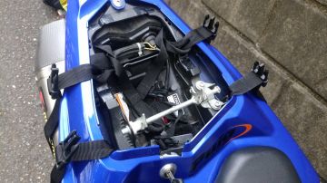 シート固定ベルトを車体シートに取付ける事で、バッグをスマートに固定します。